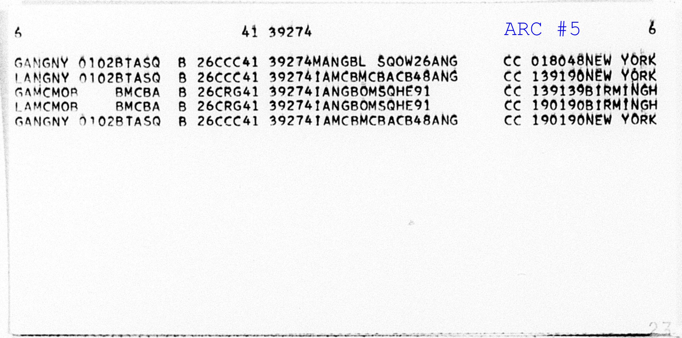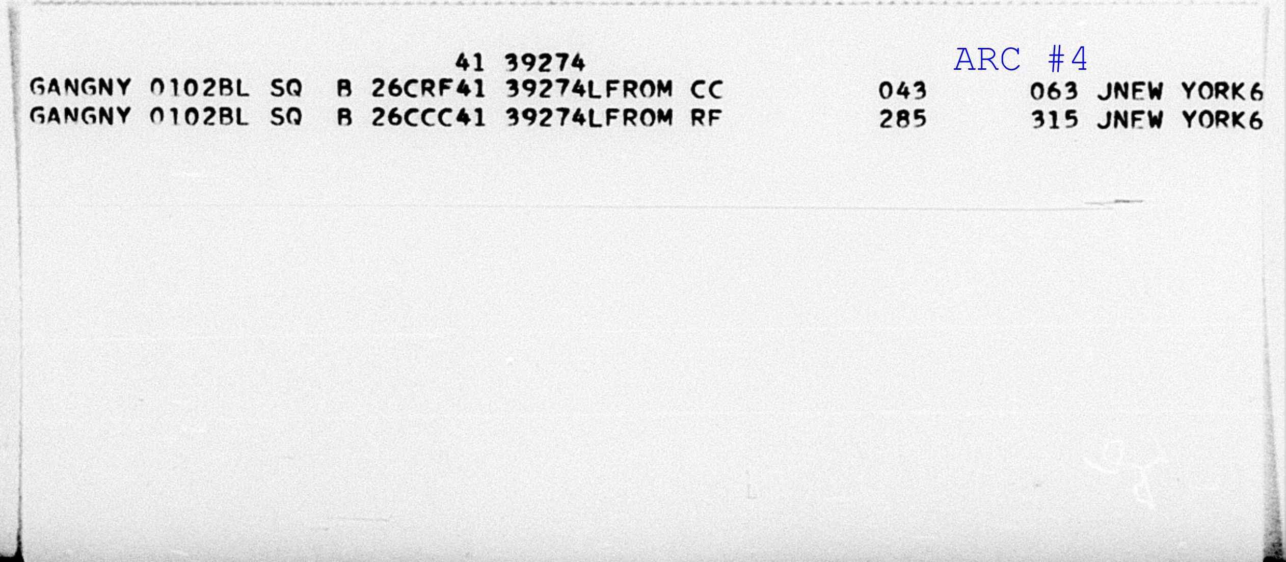 Line 1 "Small Card" Header Record - Displays Serial Number usually with a form of date in upper-right corner of the ARC