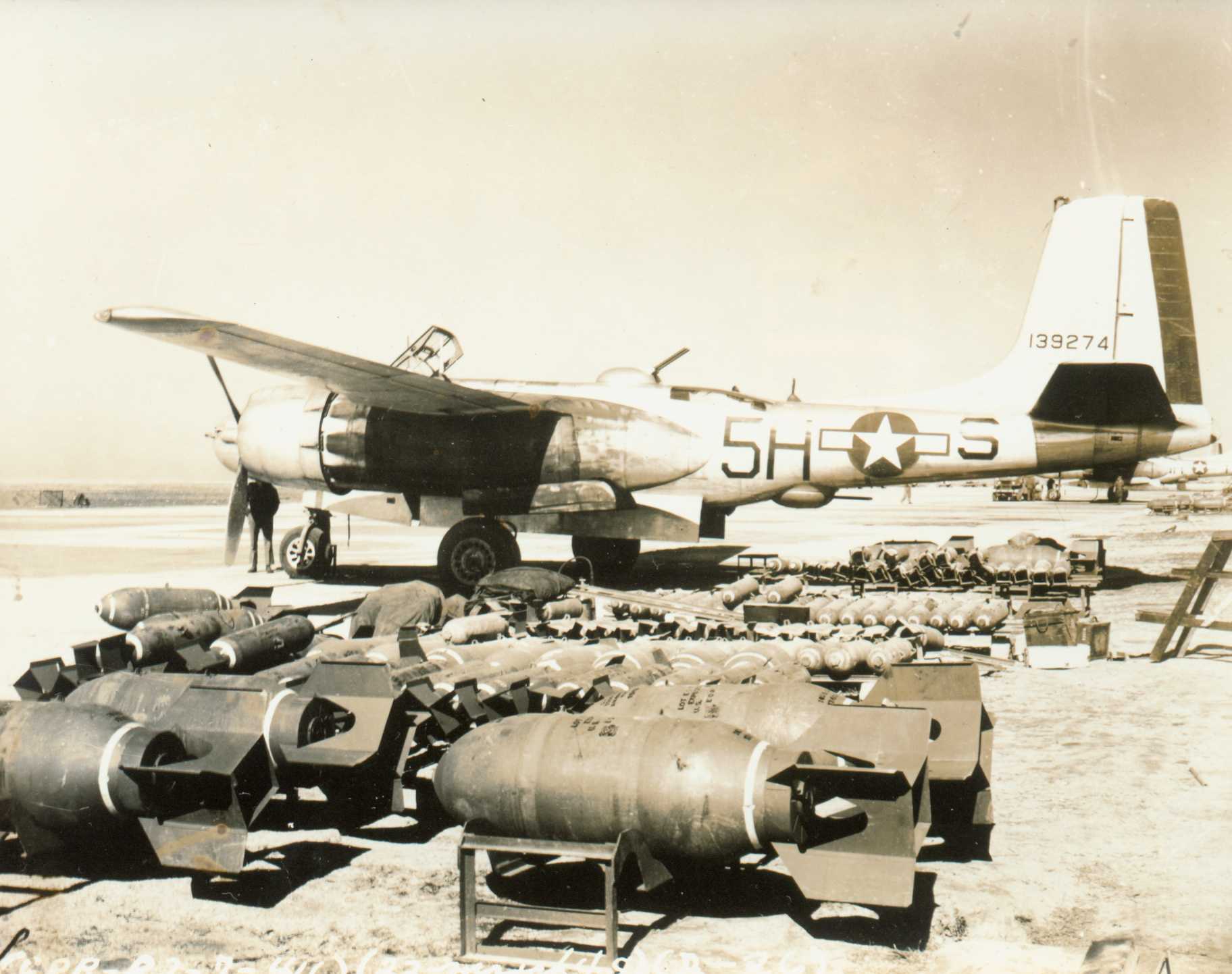 Description: 1st. Lt. Lumir "Lou" J. Prucha and A-26B "Sugar Baby" (5H-S).