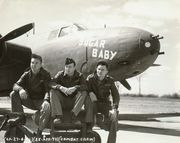 Description: Sugar Baby on the Tarmac, likely preparing for 416th BG Mission # 248 against Berken Communication Center, Germany. Lou piloted Sugar Baby on this mission. Note the Nose art consists only of the name "Sugar Baby". Photo dated 22-Mar-45.