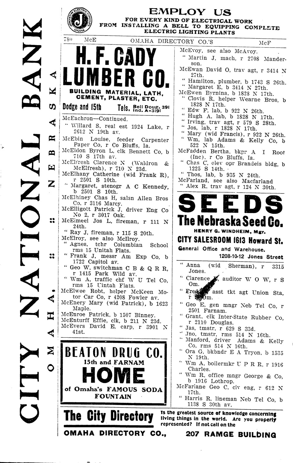 McEnery, Mary J. (Foley), Omaha City Directory, 1910